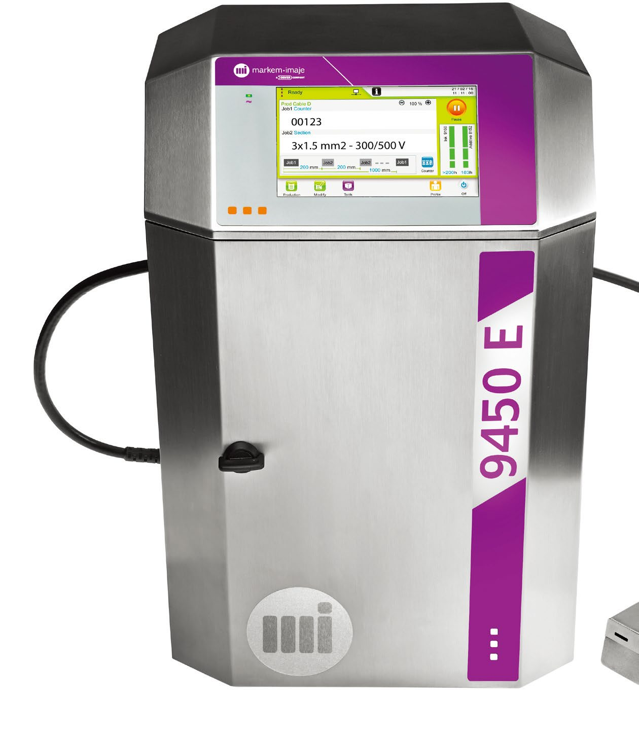 馬肯依瑪士9450E專(zhuān)為線纜行業(yè)打造,提供的操作系統(tǒng)和豐富的彩色油墨,實(shí)現(xiàn)高速?lài)娪⌒阅?/span>。另外,馬肯依瑪士F500光纖激光機(jī)可以高速打印對(duì)1064 nm波長(zhǎng)敏感的基材,標(biāo)識(shí)效果出色且持久。馬肯依瑪士的工程師們知道噴碼標(biāo)識(shí)是生產(chǎn)的一個(gè)環(huán)節(jié),如果生產(chǎn)線上的任何一處出現(xiàn)問(wèn)題,那么整條生產(chǎn)線都會(huì)受到影響。